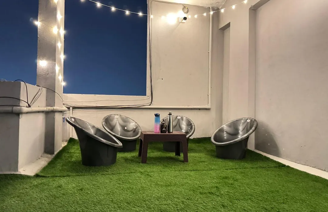 Penthouse Escape 1Bhk Park View Flat In Kondapur Apartment offers a balcony, a seating area, and a fully equipped kitchen, as well as comforts like climate control. The property is equipped with a bathroom that features bathrobes. Furthermore, a separate toilet and a shower is available.